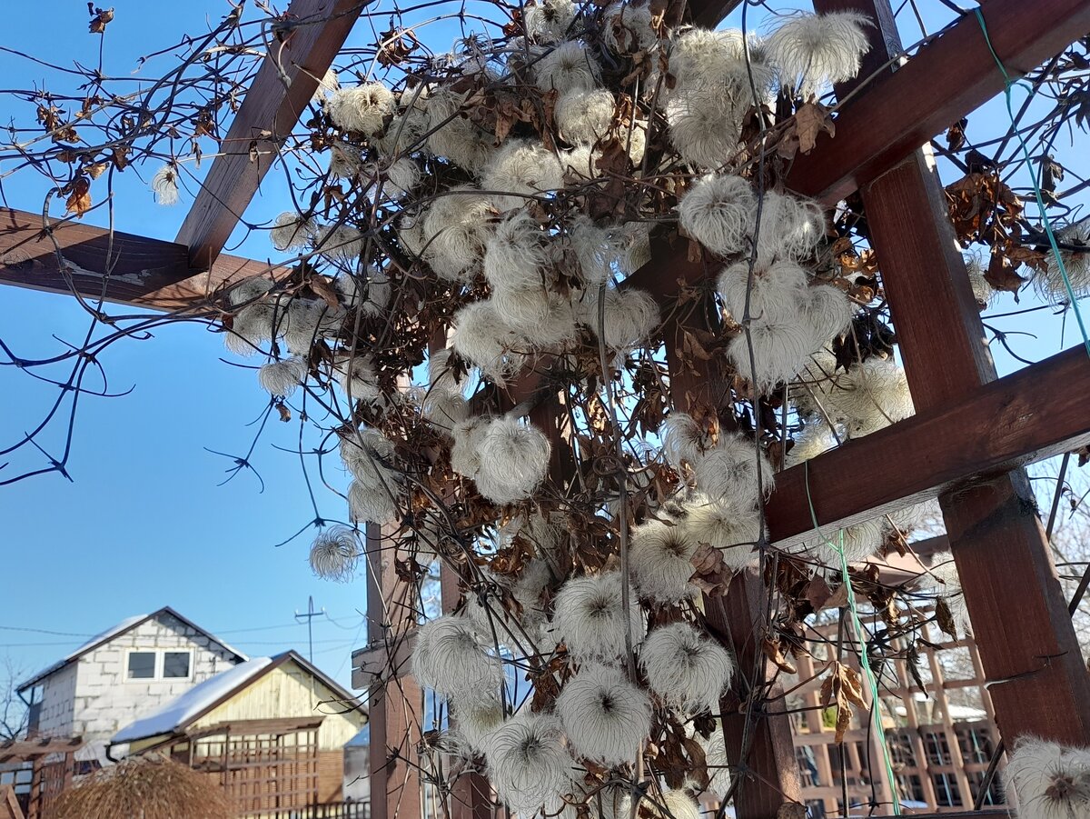 Фактически дачный сезон у нас и не заканчивался. Всю зиму мы ходили на дачу. Чистили снег, приносили покупки. Но наконец-то пришла весна, закончились сильные морозы и выглянуло солнце. Стало очень тянуть на дачу что-нибудь поделать. Везде снега по колено и делать как-будто нечего, но у нас работы много. Мы продолжаем отделочные работы с новом доме. Пока только те, что не требуют стабильных плюсовых температур и воды. Подробно об этом расскажу в следующих статьях. Потихоньку оголяется плитка вокруг нового дома. Даже в сильные снегопады снега здесь было очень мало. Ледяная корка под солнечными лучами начала подтаивать и легко убралась. Теперь у нас есть участок с признаками весны. Так приятно ходить по плитке. А остальная часть участка - вечная мерзлота. Даже непонятно, когда это все белое богатство таять собирается. Пришла пора убирать новогодний декор. Сняла украшения с санок и фонарей. Дверную композицию занесла в павильон для бассейна. Ей нужно хорошо просохнуть. На двери маленько