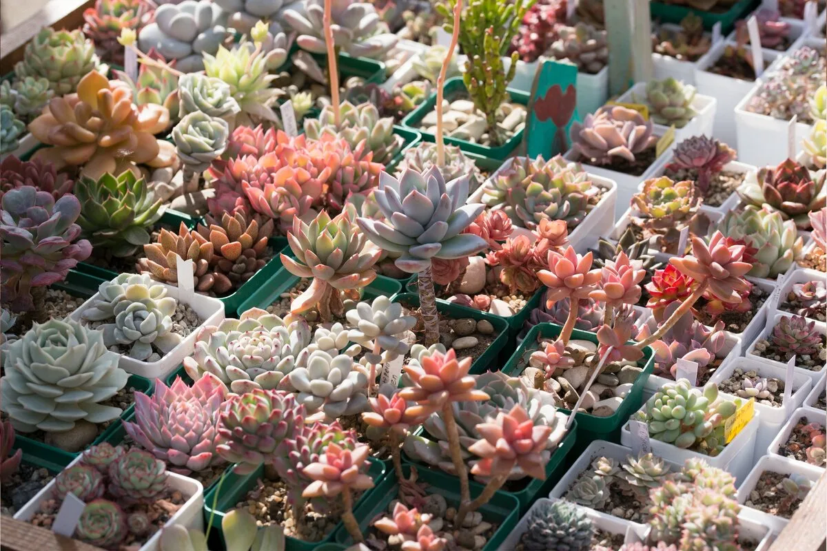 Место где будут размещены суккуленты лучше притенить сеткой (30-50%). Идеальный вариант это когда прямое солнце попадает на растения до 11 и после 16 часов. Полуденный свет слишком интенсивен и не всем бывает по нраву. Можно размещать горшки под большими деревьями, чтобы утром и вечером на них попадал прямой свет, но опасайтесь слизняков! С деревьев они так и сыпятся!