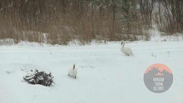 Лесные новости от Павла Глазкова/Каждой твари по паре. Напомню, что на Финском заливе осталась зимовать огромная стая лебедей. Во время съемки мне удалось понаблюдать за умилительной картиной, как пара лебедей решила прокатиться со снежной горки. В районе города Сосновый Бор Ленинградской области обнаружена большая группировка лебедей. Вместе с орнитологами из зоологического института, мы насчитали здесь около 250 (!) птиц. На заливе зимуют два вида: лебеди-кликуны и лебеди-шипуны, причём последних – явное большинство. Птицы остаются здесь уже третью зиму подряд, хотя в прошлом году их было в два раза меньше. Похоже мы становимся свидетелями образования на Финском заливе круглогодично живущей группировки птиц. Пернатые остались зимовать в этом месте благодаря наличию незамерзающего участка воды. Это одно из обязательных условий. Другая причина зимовки птиц именно здесь – мелководье. На нем много разнообразной растительной пищи, до которой лебеди способны дотянутся с помощью своей длинн