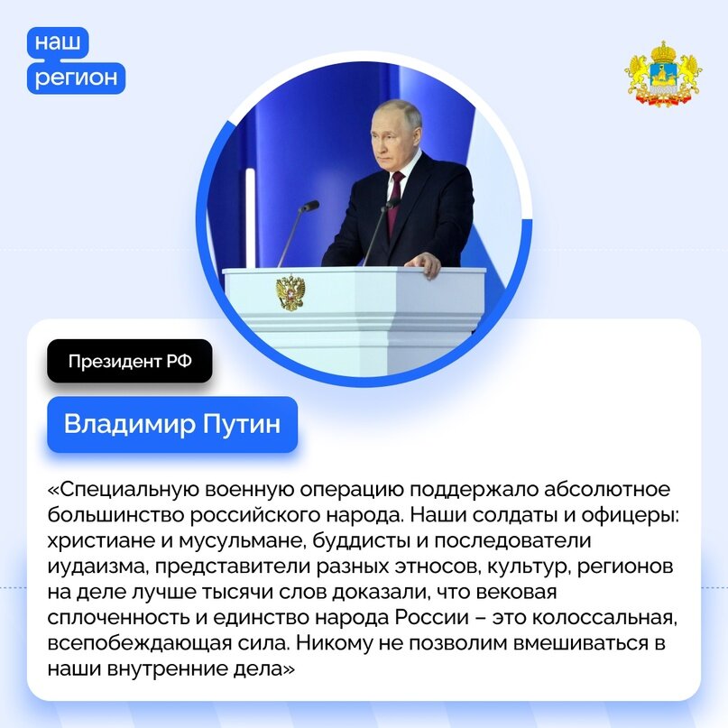 Президент Владимир Путин начал своё послание Федеральному собранию со слов благодарности за поддержку спецоперации
