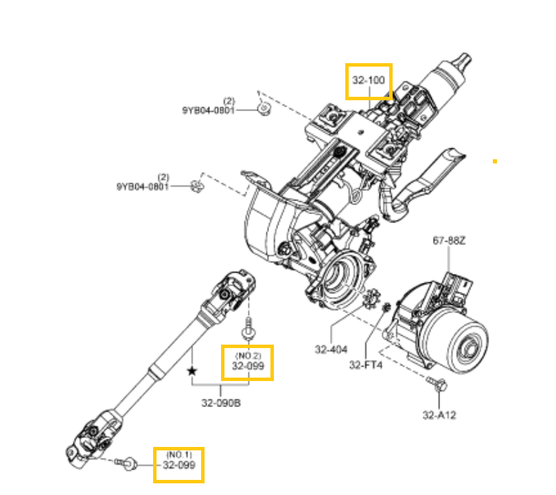 Некоторые владельцы 2016-2023 CX-9, 2017-2023 CX-5, 2017-2021 Mazda6 могут жаловаться на скрип, стук, дребезжание или лязг, исходящий из рулевой колонки при движении. Как выяснилось из Технического бюллетеня (https://static.nhtsa.gov/odi/tsbs/2024/MC-10249497-0001.pdf), причина заключается в том, гайка рулевой колонки (энергопоглощающего вала [SHAFT, ENERGY ABSORBER]) ослабляется из-за чрезмерной нагрузки при движении по неровным дорогам. Чтобы устранить эту проблему, момент затяжки гайки рулевой колонки был увеличен. Владельцы, а/м которых испытывают эту проблему, могут отремонтировать свой автомобиль, используя следующую процедуру ремонта. ПОРЯДОК РЕМОНТА