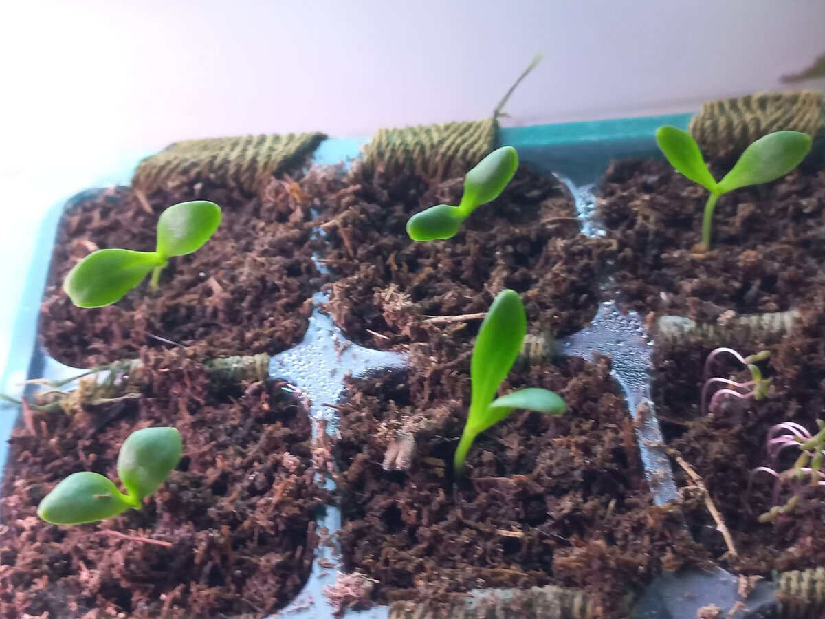 Теория была здесь и здесь А вот это практика: Пять сеянцев остеоспермума Акила Sunset Shades доказали обещанную агрофирмой Биотехника 100% всхожесть достаточно дорогих семян. Они были посеяны с небольшим заглублением по одному в ячейках с грунтом, полученном из почвобрикетов "Крепкая рассада" в контейнере с подсветкой. Всходы появились на 7-8 день после посева при температуре +20 - +22°C . Что дальше? Когда появятся 3-4 настоящих листа, сеянцы остеоспермума будут перемещены в ёмкости объёмом 0,5 литра с более питательным грунтом. Так же планируются прищипка кустиков для пышности и их подкормка удобрением для рассады. Примерно через месяц, в первой декаде апреля, цветочная рассада будет перенесена в теплицу с инфракрасным обогревателем. На случай долговременного похолодания предусмотрено дополнительное укрытие спанбондом по дугам. Как всё это будет происходить, я обязательно покажу в дальнейших публикациях по теме.