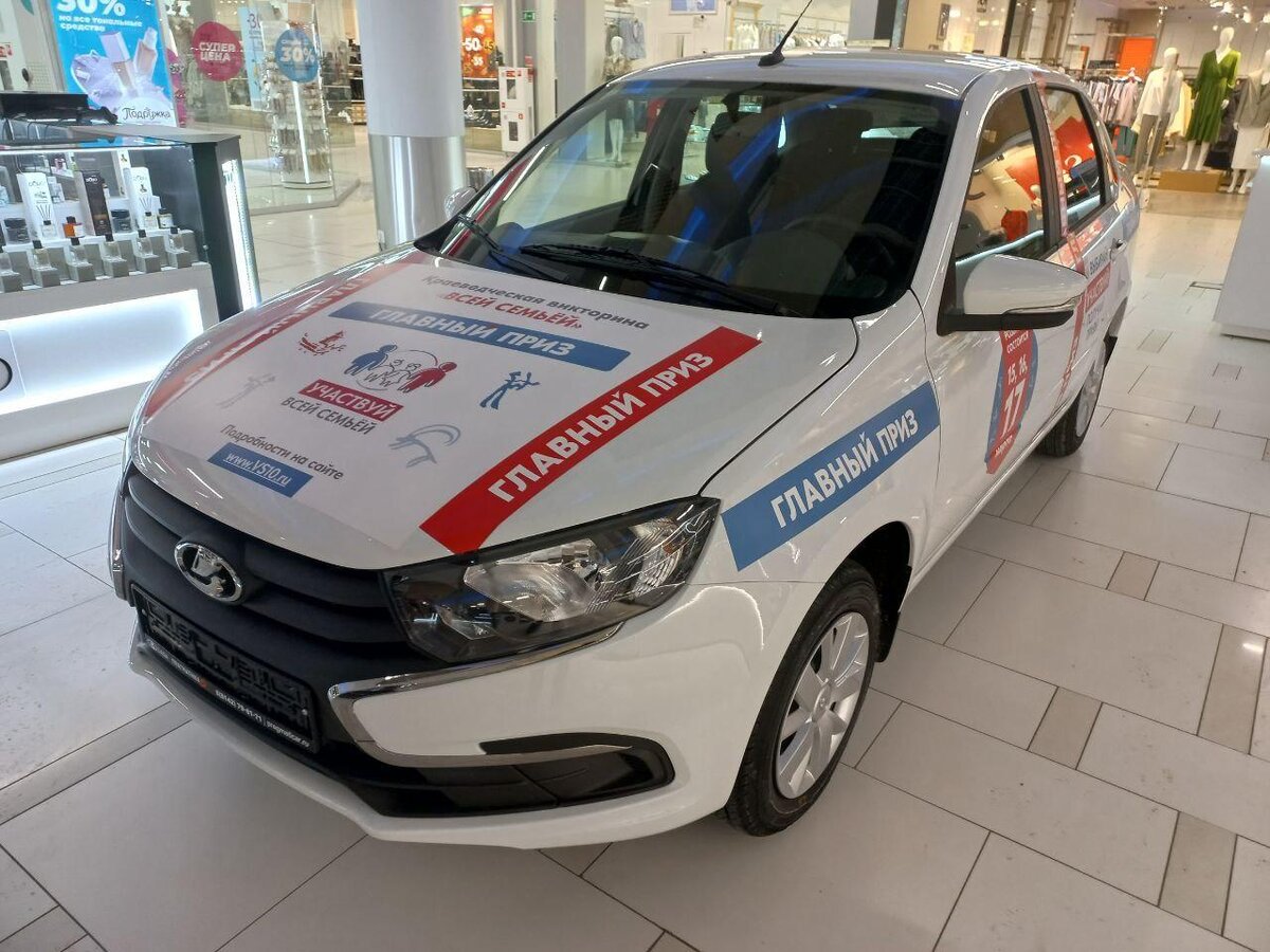 Автомобили, украшенные плакатами «Краеведческая викторина «Всей семьёй» в торговых центрах – главный приз, на который могут рассчитывать участники викторины. В торговых центрах Петрозаводска «Макси» и «Лотос Plaza», а также в Кондопожском «Лотос City» появились автомобили, украшенные плакатами «Краеведческая викторина «Всей семьёй». Они – главный приз, на который могут рассчитывать участники. Мы узнали у жителей карельской столицы, хотели бы они сами получить такой автомобиль. «Было бы приятно выиграть любой автомобиль, но у меня у самого «Лада Гранта». У меня есть супруга, которая могла бы ездить на данном автомобиле».