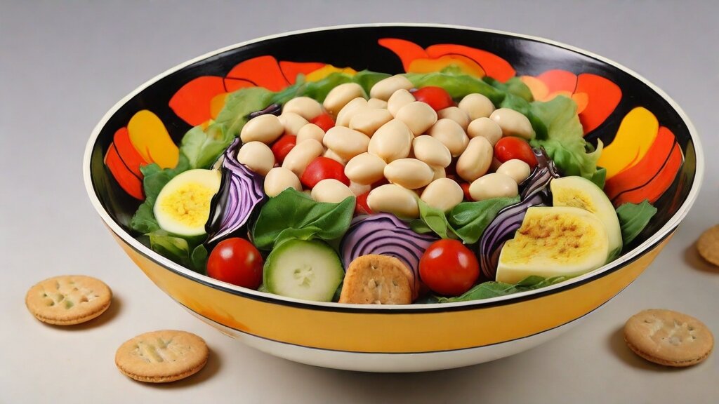 - Подавайте салат с белой фасолью и сухариками как гарнир или самостоятельное блюдо.