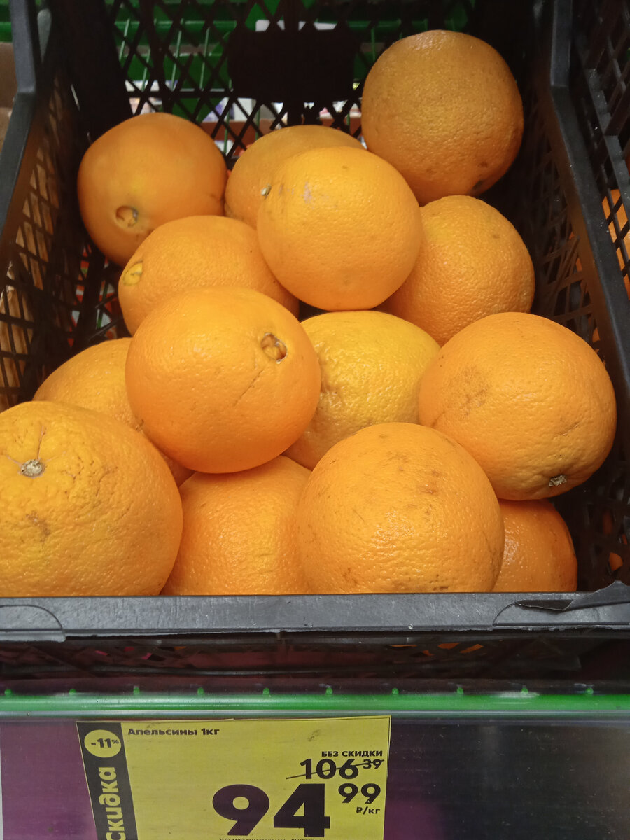 Я в апельсинах разбираюсь и толстошкурые кормовые никогда не беру. Один раз я, конечно, промахнулась и схватила кислые и несъедобные Неделю они пролежали в холодильнике и никто на них не соблазнился. Даже пыталась апельсиновое варенье сварить, но нет - все на выброс...Напиток немыслимый сварила, лишь бы не выбрасывать эту "кислятину" А тут в Пятерочку зашла и смотрю апельсинки, как я люблю Купила три штуки и не промахнулась. На следующий день пошла и еще пять штучек купила, но уже по 110 р Еще несколько раз ходила за этими апельсинами и всегда удачные. Сочные и совсем не кислые Видимо очень удачный завоз. В Дикси тоже их обнаружила и пять штук купила Покупайте, друзья мои, такие апельсины пока завоз, а то опять кормовые несъедобные подвезут...