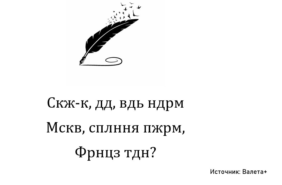 2. Убираем все гласные буквы во всех словах этого выражения (исключение: союзы, частицы)