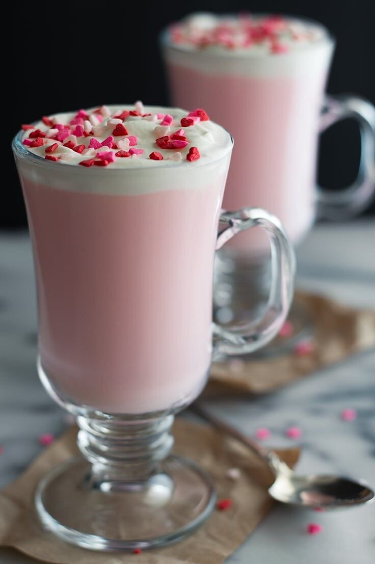 Нам понадобится: Молоко наливаем в сотейник, по мере нагревания молока кладем весь шоколад и добавляем капельку красителя. Греем до получения однородного розового цвета. Горячее молоко переливаем в стакан и подаем с маршмеллоу либо по своему вкусу.
