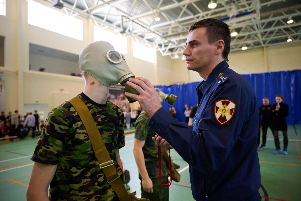 В ОЗК (общевойсковой защитный комплект) быстрее других облачился представитель первой балабановской Никита РЕПИН, в противогаз – Альбина ПЛИГИНА из ермолинского техникума.