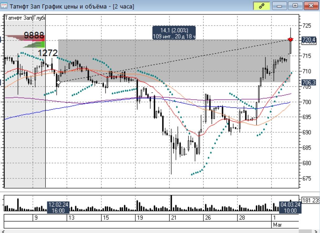 Сегодня день фиксации прибыли. В начале торгового дня ловим восходящую шпильку по префам Татнефти, прибыль составила 2% за 20 дней.