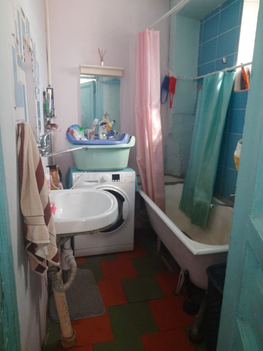 Наконец-то у нас закончилась часть работ по ремонту бывшей коммунальной квартиры в доме 1911 года. Сегодня хотела бы показать, что из этого всего получилось. Срок выполнения подзатянулся, т.к. приходилось ждать некоторых подрядчиков, но результат мне очень нравится. Итак, наш исходник - небольшая ванная, 2.2 кв м, которая последний раз ремонтировалась годах в 80х. Сложностей добавила конфигурация комнаты, наличие ниши, и вот эти углы: Шаг первый был, конечно, полный демонтаж всего, включая пластиковый потолок и батарею отопления. Мы выровняли стены, заменили трубы, залили новую стяжку. Из всей старой обстановки осталась только сама ванна, ее мы покрасили и восстановили акрилом. Старинное окно из стеклоблоков Фальконье мы восстановили с помощью прекрасной местной мастерской, за что им отдельное спасибо! На пол уложили современную метлахскую плитку, на стены обычные белые квадраты. Тумбу под раковину я отреставрировала сама и залила столешницу эпоксидный смолой, чтобы она не разб