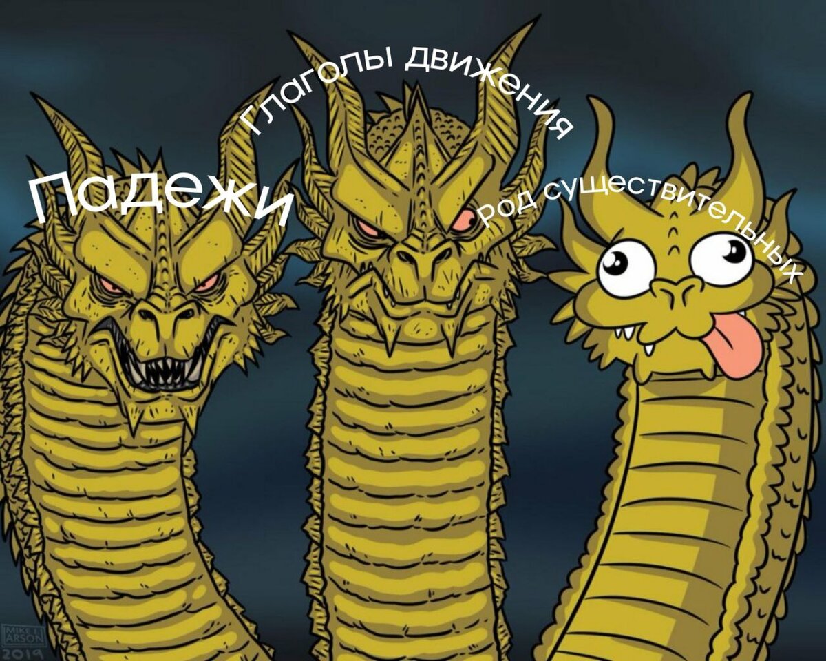 Знаете, недавно на парах мы решили выяснить, какие темы в русском языке наиболее сложные для иностранных студентов. Выяснили - падежи, конечно. Род существительных. какой еще, третий таинственный зверь? Одушевленные и неодушевленные существительные? Глаголы движения?? Вам эти темы не кажутся сложными? Что ж, хорошо... Тогда ход конем. Из пещеры выползает змеиная голова с именем “Н и НН в именах прилагательных”, за ней следом - “Причастия и деепричастия. Их различие”. Ну, а далее - “Корни с чередованием” И тут неожиданно вы понимаете, что это не классический змей Горыныч с тремя головами, но какое то мифологическое чудище, у которого этих голов - несчетное количество… Голова с именем “Приставки ПРЕ и ПРИ”, “ Склонение существительных”, “Спряжение глаголов”, “Производные предлоги”, “ ССП и СПП”, “Односоставные предложения”... Испугались)? А сможете победить все эти головы, смело одержать вверх над этими темами? Не уверены)? Тогда рубрика вторника - Страшный зверь “ГоРынАММАчТИКА” - ДЛя в