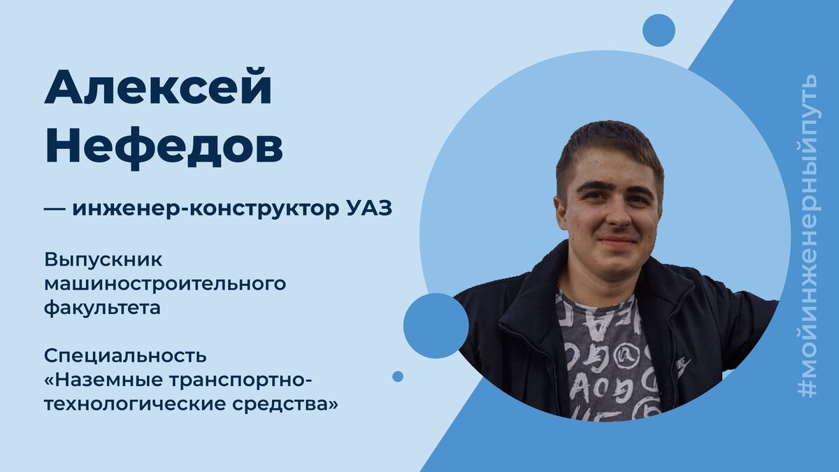 Герой сегодняшнего материала - инженер-конструктор Ульяновского автомобильного завода, выпускник направления «Наземные транспортно-технологические средства» машиностроительного факультета Алексей Нефедов.