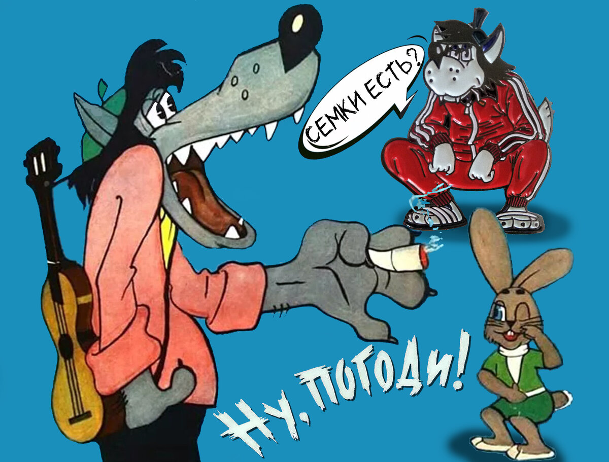 "Ну, погоди!" - современные значки с Волком и Зайцем