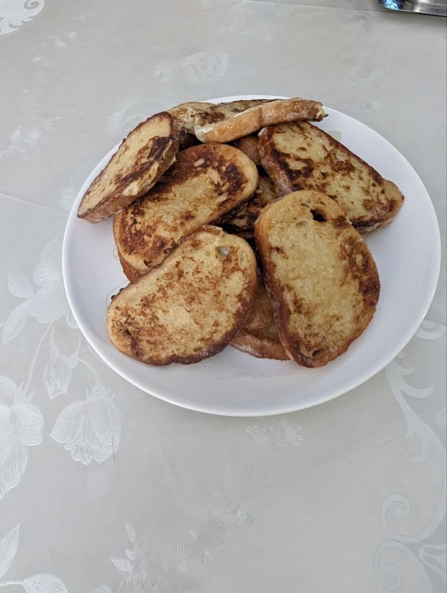 Решили побаловать своих близких чем то вкусным на завтрак? Ловите рецепт гренок по домашнему-просто, вкусно, приготовить может любой и минимум продуктов. И так поехали....................... Для приготовления гренок берем яйца, молоко, подсолнечное масло и конечно сковородку. Сковороду желательно большую, но подойдет какая угодно. Яйца любые, можно даже перепелиные (пробовал-замучился их разбивать(их просто много надо)). Хлеб тоже можно любой (батон, белый, черный). Главное чтобы был не плесневелый. Подсолнечное масло - какое есть в наличии дома. Н у и молоко. Разбиваем яйца в миску. Добавляем молоко (один к 4-5 примерно). Я всегда немного подсаливаю, можно и подсахарить ( но чуть - чуть совсем). Берем вилку и все это перемешиваем до однородной смеси. Берем нарезанный хлеб и обмакиваем в готовую массу. В зависимости от мягкости хлеба необходимо дать ему напитаться и только потом на сковородку. Добавляем подсолнечное масло на подогретую сковороду ( масло не жалейте). Нагрев сковороды н