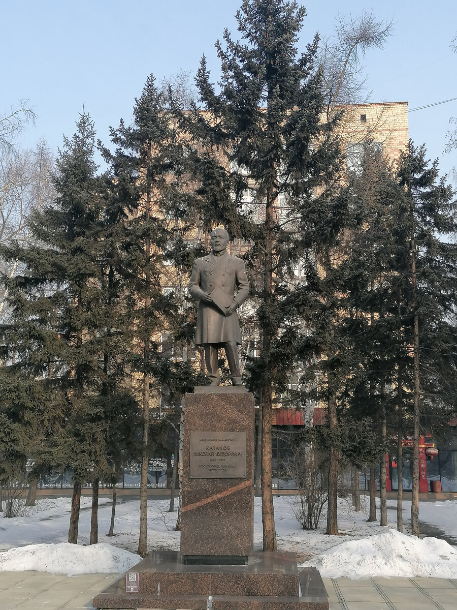 Итак, 26 октября 2007 года в сквере Студенческом рядом с Хакасским государственным университетом был установлен памятник известному лингвисту, тюркологу, профессору Казанского университета Николаю Федоровичу Катанову. Он представляет собой двухметровый постамент, на котором возвышается бронзовая фигура нашего прославленного земляка. Автор памятника — красноярский скульптор Константин Зинич. Кстати, кроме Государственного университета в Хакасии именем Катанова названа и национальная гимназия в Абакане.