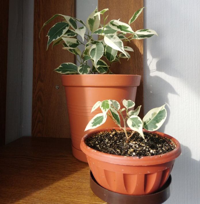 В этом деле размер горшка имеет большое значение. Не секрет, что нельзя сажать маленькие растения в большие горшки, даже если мы точно знаем, что растения через какое-то время станут большими. Увеличение горшка должно быть постепенным и соразмерным с текущим размером комнатного растения. В статье о пересадке комнатных растений писала о главном принципе подбора горшка- при пересадке рекомендуется прибавить по 2 см к диаметру и высоте предыдущего горшка. Так же не секрет, что если при пересадке размер горшка не увеличивать, а корни чуть подрезать, то растение замедлит рост. Так делают, если пространство помещения не позволяет вырастить крупный цветок. Как изменится вид растения, если ему умышленно мешать расти, уменьшая размер горшка? Да, именно так выглядит основной технический приём выращивания дерева бонсай из обычного дерева- делать миниатюру из обычного растения. Это долгий процесс преображения комнатного растения. Пройдут года, когда сформированное деревце будет таким, каким мы