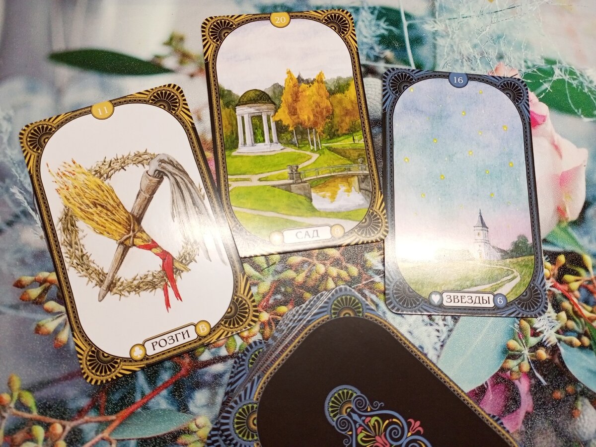 с ним( с ней)! Что дают вам эти отношения!! (расклад для тех, у кого всё хорошо в отношениях и вы благодарны за это!). (а так же для тех, кто желает таких отношений!) И так! Вначале отношения бурные, страстные, сексуально - активные! А как вариант, наоборот начались с соры, разборок, конфликта, но переросли в страсть!..Это указывает на кармические отношения, возможно незавершённые в прошлой жизни и вас свели для доработки. Далее, Сад осенний и это тоже указание на отношения, пришедшие с прошлого, но теперь уже всё душевно и благостно, совместные прогулки и путешествия вас вдохновляют идти вместе к вашей общей мечте, о чём говорит карта Звёзды!.Вы маните друг друга, как звёзды в небе!. Да, ваши отношения с прошлой жизни, по карте Дерево, уходят корнями далеко, соединяя вас в этой жизни, соединяя ваши рода в единую семью, где ствол, это вы