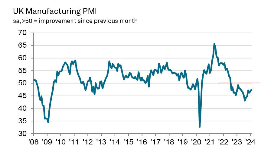 📉 Индекс PMI в производственном секторе Великобритании вырос с 47,1 пункта до 47,5 пункта в феврале, но остается в зоне сокращения.