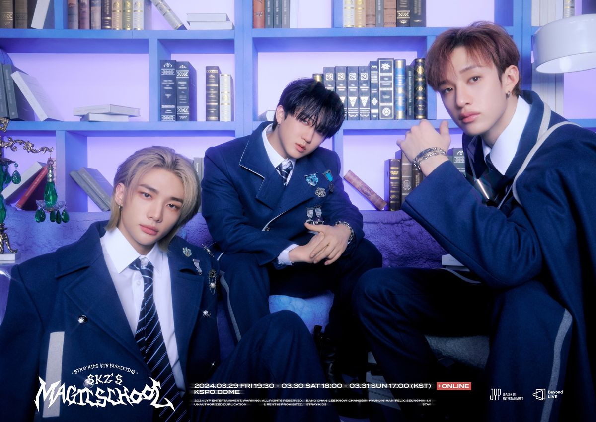 Stray Kids проведут свой четвёртый официальный фанмитинг "Stray Kids 4TH FANMEETING SKZ'S MAGIC SCHOOL" KSPO DOME с 29 по 31 марта. 31-го числа будет проводиться платная онлайн-трансляции через платформу Beyond LIVЕ одновременно с офлайн-выступлением, это позволит насладиться драгоценными моментами большему количеству фанатов. Предварительные продажи билетов для участников 4-го официального фан-клуба STAY были открыты 4 марта с восьми часов вечера по корейскому времени. Можно было приобрести билеты на три дня выступления, однак