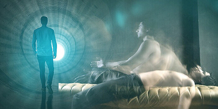 Когда Душа вылетает из туннеля, она видит себя со стороны: плачущих родственников у своего тела, медицинских работников. В этот момент Душа совершает переход в другую мерность, поэтому имеет возможность лицезреть своё собственное тело со стороны.