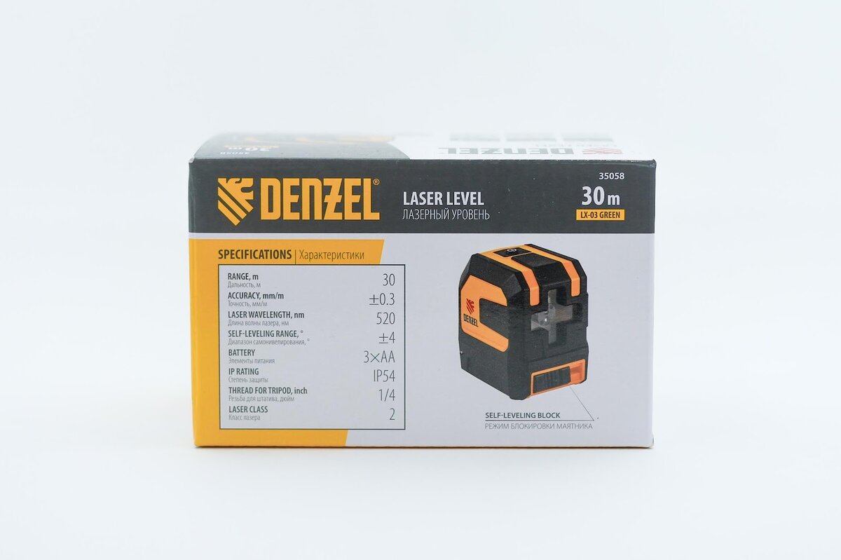 Сегодня мы рассмотрим лазерный уровень нивелир Denzel LX-03. Он отличается компактными размерами, всего 85 x 60 x 80 мм, и показательными техническими характеристиками, благодаря которым может стоять в одном ряду с профессиональными моделям. Уровень проецирует лучи на расстояние до 30 м с точностью ±3 мм на 10 м. Прибор может автоматически выравнивать линии в горизонтальной и вертикальной плоскостях.