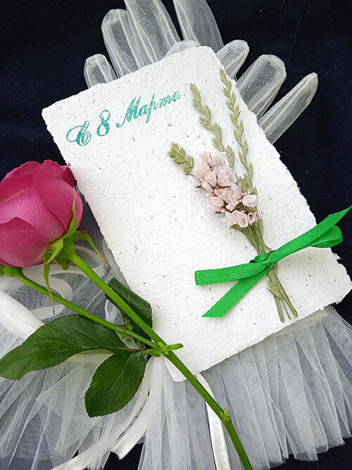 Сухоцветы и бумага ручного литья: сделала открытки-сувениры к 8 Марта