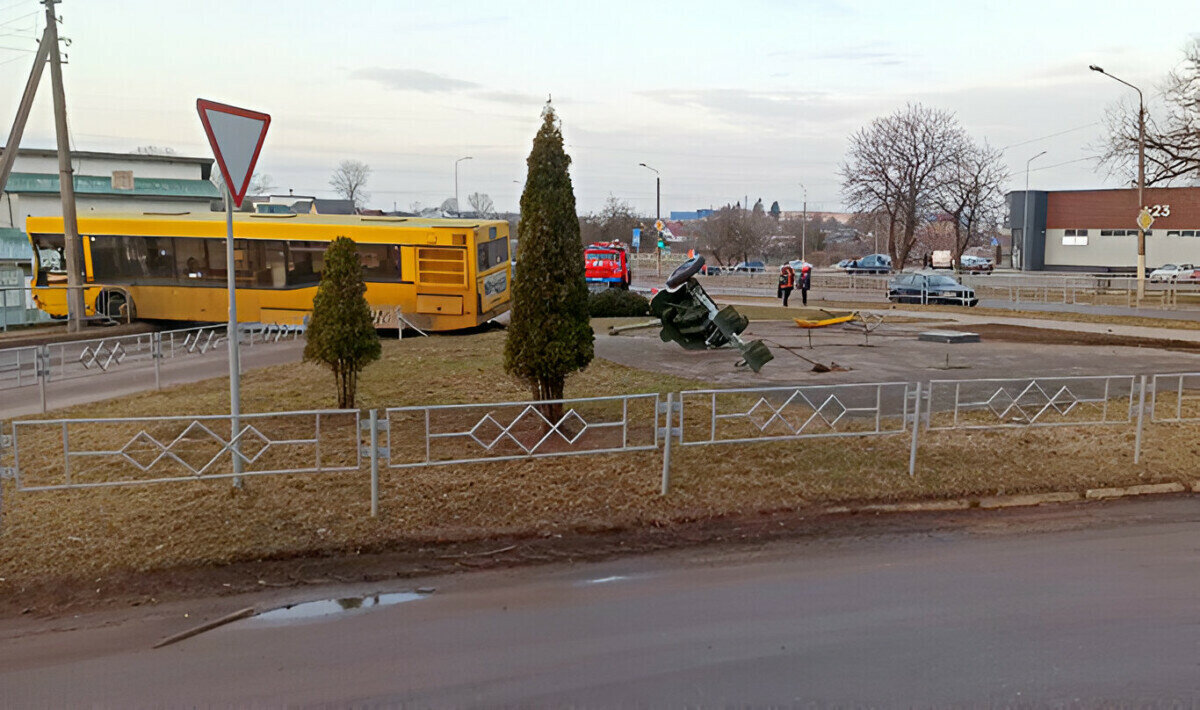 В Жодино автобус столкнулся с противотанковой пушкой — Фото