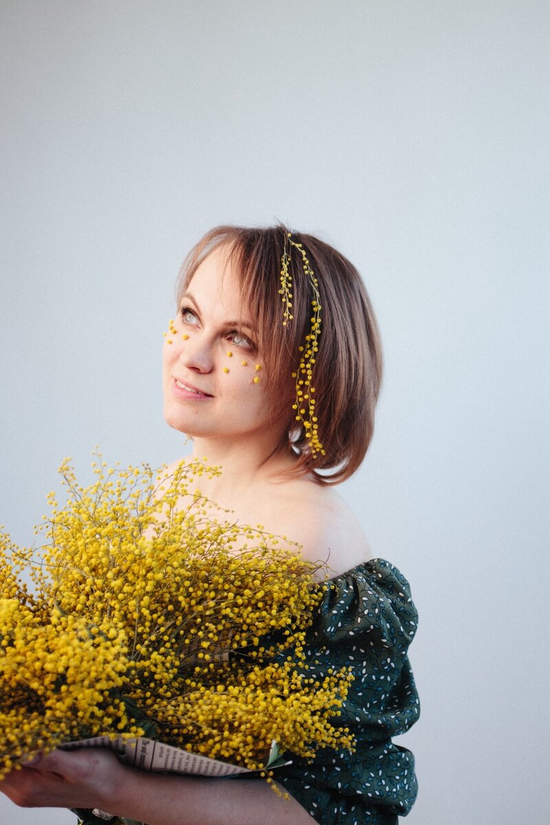 Никогда не видела этот цветок здесь! Маленькие пушистые желтые комочки, похожие на солнышко, впервые встретила в Челябинске. Был 2011 год. Я работала в цветочном магазине, а неподалеку от него, прямо с машины продавали мимозу. Сказали бы мне тогда, что этот цветок ооооочень капризный. Возможно (но это не точно), мне бы не пришла в голову идея найти и привезти ее в Сибай для фотосессий.