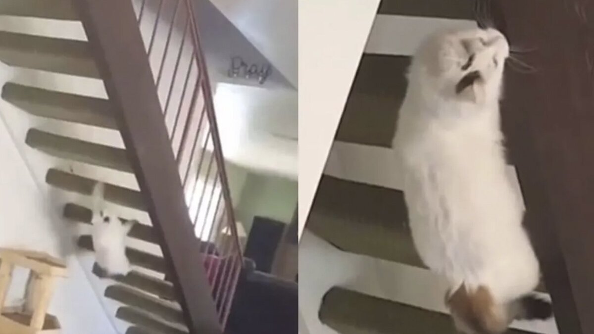 Кот необычным способом поднялся по лестнице и озадачил Сеть
