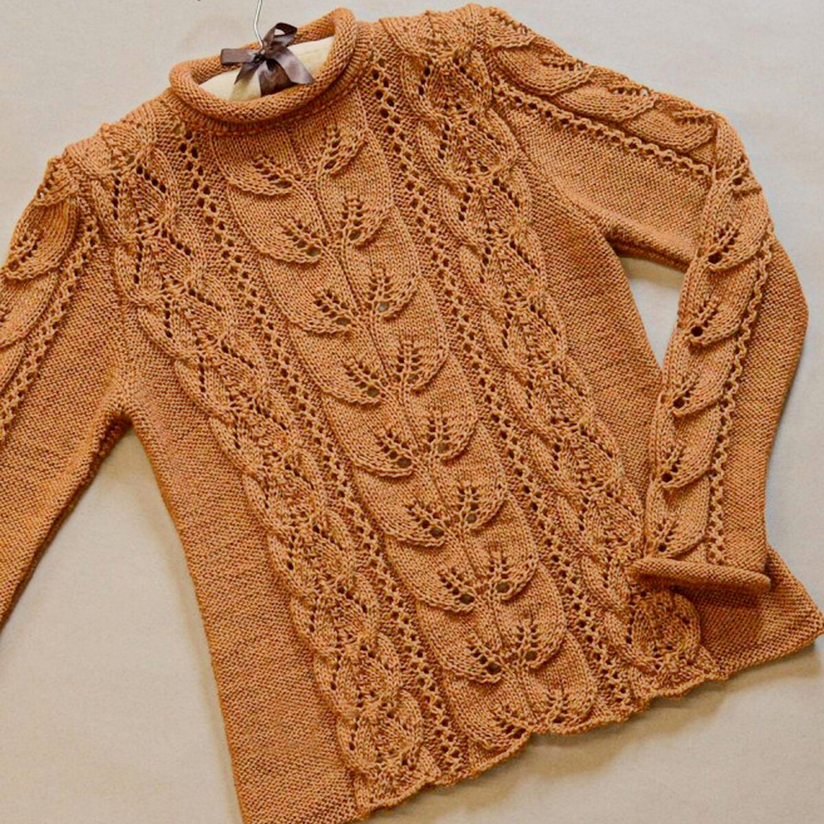 Лиственный свитер, пару пуловеров и стильных джемперов с красивыми ажурными узорами