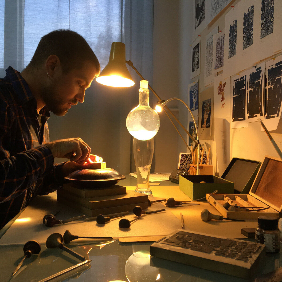 Ну и то, что всегда со мной, и, наверное, будет влиять на меня, что бы я ни делал, — Московская школа ксилографии: Фаворский, Бисти и мой учитель Владимир Кортович. В этот гравюрный источник можно погружаться за любым советом, там множество ответов и подсказок.