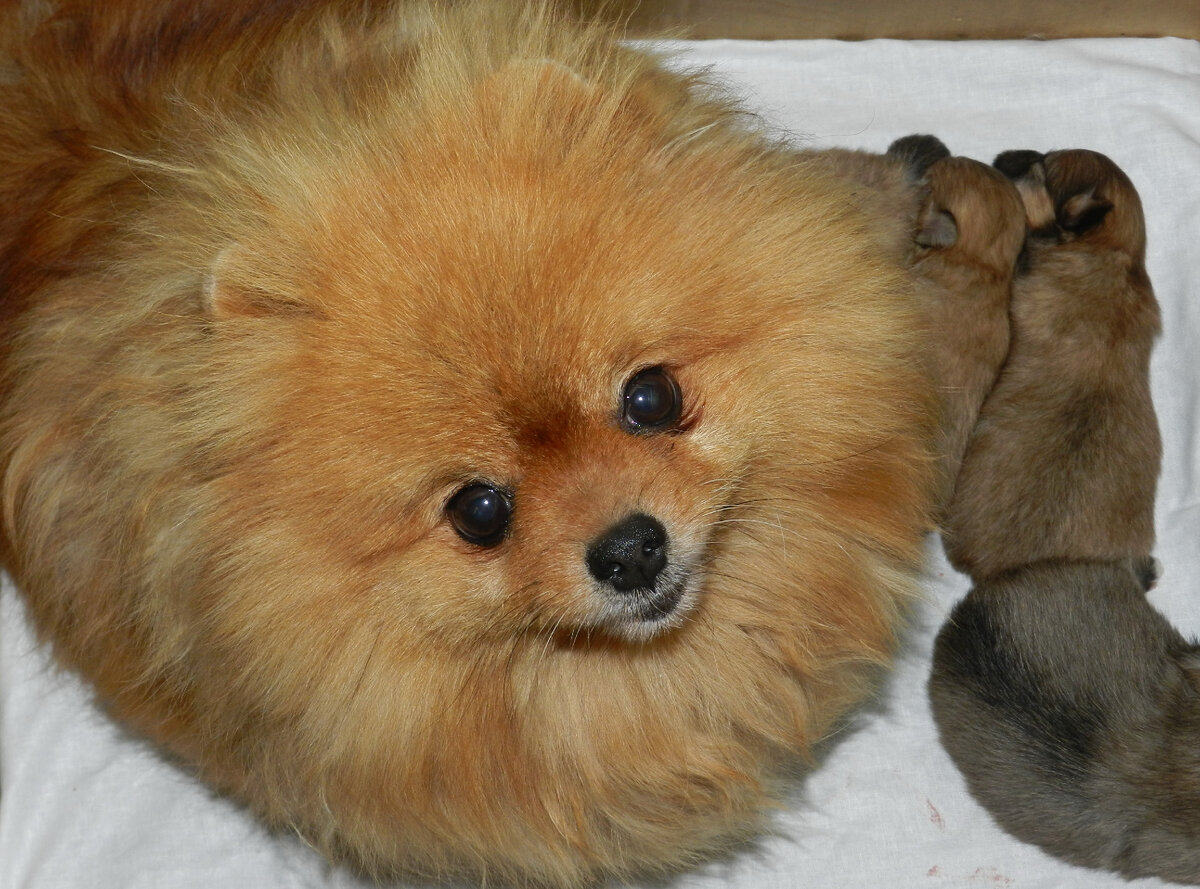 Беременность длится около 63 дней, плюс минус 3 дня. Щенки считаются жизнеспособными на 56 день. Роды до этого срока можно считать выкидышем. Как узнать, что собака готовится стать мамой? Обычно, за три дня до предполагаемых родов начинает опускаться живот. Вы можете заметить, что появилась талия, и живот как бы провис. Заметив такое, нужно начинать приготовления. У собаки должно быть место, к которому она привыкнет, обычно суки выбирают уединенное, затененное место. Так они чувствуют себя спокойней. Учитывайте это при выборе места. Дальше запаситесь дезинфицирующим раствором, ножницами, салфетками или мягкими , хорошо впитывающими влагу тряпочками, нитками, грелкой и медикаментами, такими как окситоцин, но-шпа, борглюконат. Это необходимый минимум, который должен быть под рукой. Возможно и не пригодится, но на всякий случай пусть будет.