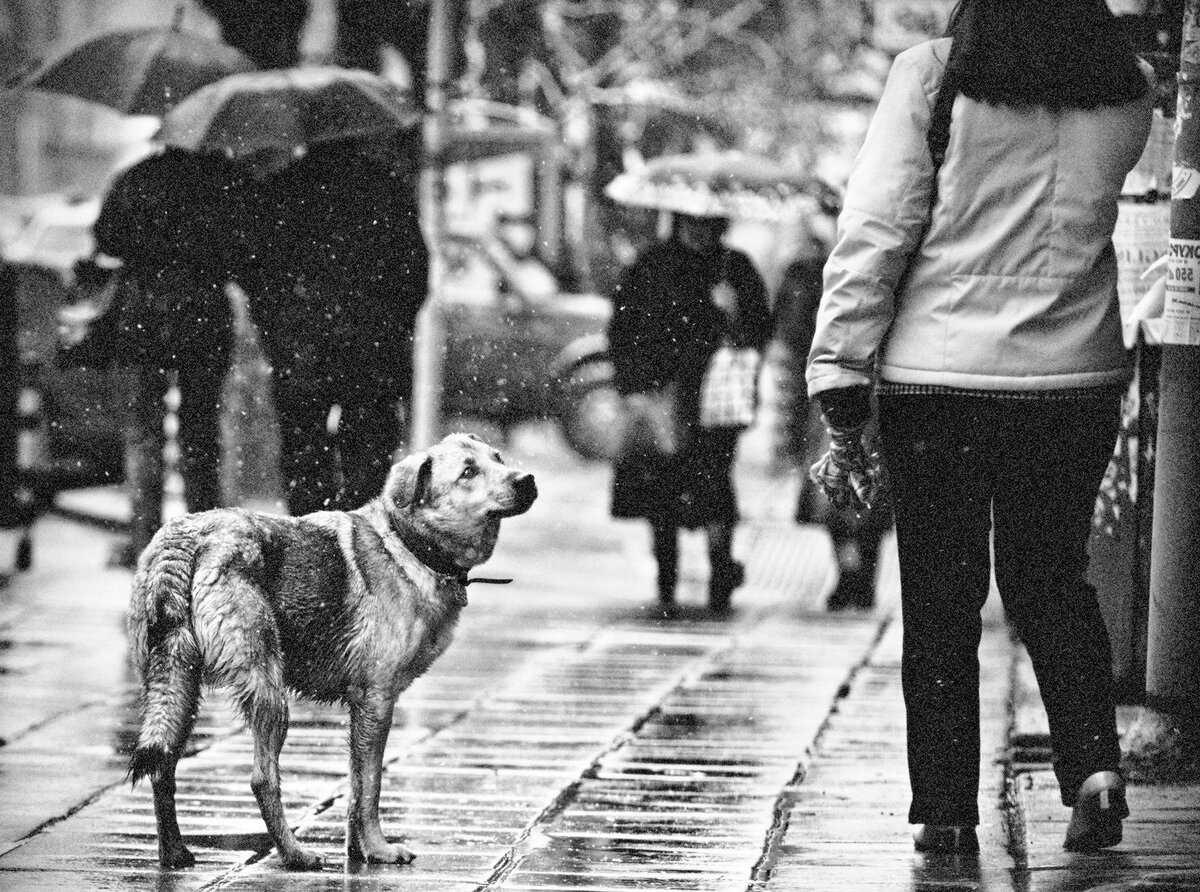 Стоило мне совершить покупку и выйти из здания, я увидел то, что сбило меня с толку. На тротуаре сидела большая беспризорная собака. Ее глаза были полны непримиримого голода. Одновременно моему сердцу стало жалко это голодное существо, но и поразили огромные размеры дворняги. Пес приметив меня на безлюдной улице, начал подбираться ближе. А затем он блокировал мне путь и не позволял пройти. Не думая дважды, я положил свои покупки на землю, достал