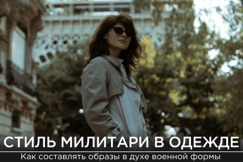 Милитари — это стиль, отсылающий к военной эстетике. В подобных образах можно найти кители, однобортные жакеты и куртки, тактические тренчи.