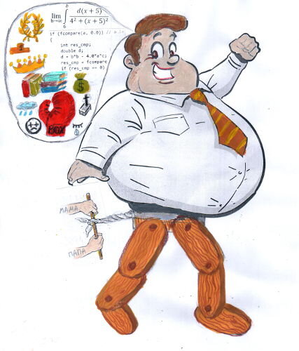 Так говорил высокий, крупный мужчина комплекции "колосс на глиняных ногах". Большая голова, крупный торс, выпирающий живот, а ниже будто жгут медицинский наложен: узкие бедра, костлявые ноги.