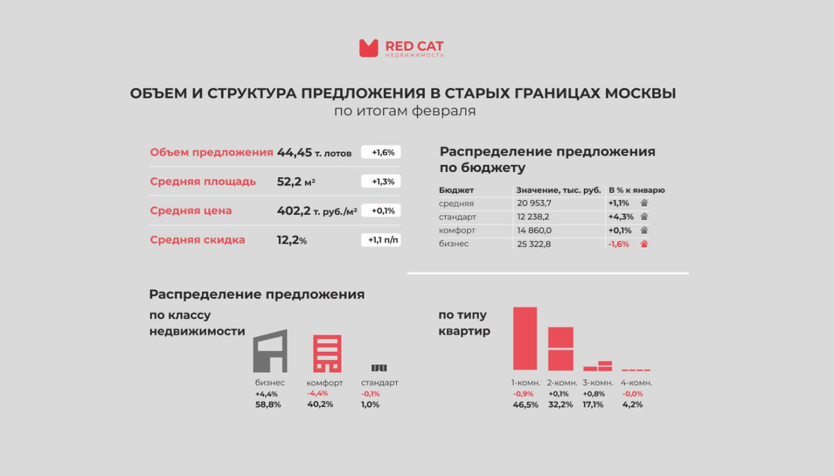 Итоги февраля в старых границах Москвы– объем и структура предложения