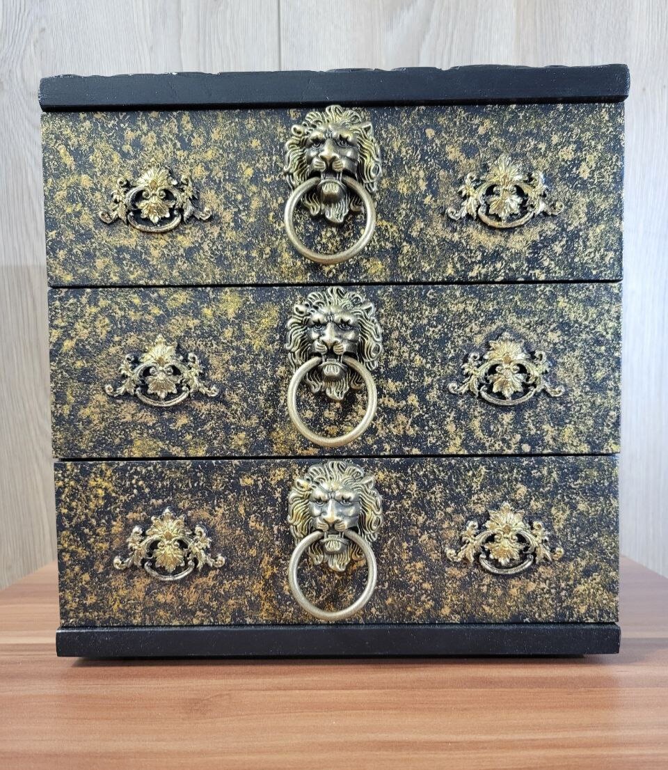 Ну что же, наш очередной мини комод из предыдущего поста преобразился и приоделся в новые одежды из лепнины и золота😻 Эта "лепнина" из шпатлевки появилась на комоде по причине того, что мне не понравилось как выглядит мдф просто под слоем краски, скучновато как-то. И после недолгих поисков в интернетах, я нашла этот способ декорирования изделий. Он до безобразия прост, но окончательный эффект мне понравился. На декорируемую поверхность наносится равномерный слой шпатлевки (у меня была по дереву) толщиной около 5 мм и, например, обратной стороной кисточки, "рисуем" круговыми движениями узор. Примерно так👇 Далее все это чудо хорошо сушим, шкурим неровности, красим, убираем под лак и любуемся своим трудом😻