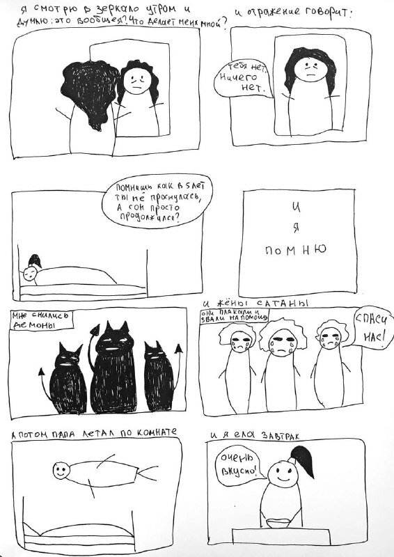 Мне всегда было интересно попробовать делать комиксы, но мне казалось, что я недостаточно хороша для этого, что не смогу придумать сюжет, понятно нарисовать и тд. Но в один день я просто начала рисовать в своем скетчбуке, и у меня получился мой первый комикс. Первый выпуск Второй выпуск Третий выпуск Четвертый выпуск