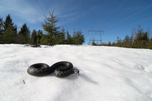 Во-первых, «спячка» и «зимовка» это несколько разные вещи. Грубая аналогия: в английском языке для этих явлений используют слова «hibernation» и «brumation», соответственно. Именно слово «brumation» вы увидите в англоязычных статьях про рептилий, если надумаете углубиться в вопрос. Спячка это термин, применимый, в основном, к млекопитающим: у них другой метаболизм, едят чаще и больше, поэтому до спячки хорошенько отъедаются, а во время нее животное практически никак не функционирует. А вот змеи, которые и без того едят редко и мало, во время своей зимовки сводят к минимуму практически все процессы (например, не едят или почти не едят), но, как правило, не лишают себя движения, могут даже выползать в поисках воды, а порой даже и немного отогреться (черные камни неплохо нагреваются даже в ситуации, когда кругом снег). В общем, змея по максимуму замедляет метаболизм и уходит куда-нибудь вглубь, чтобы переждать холодное время.