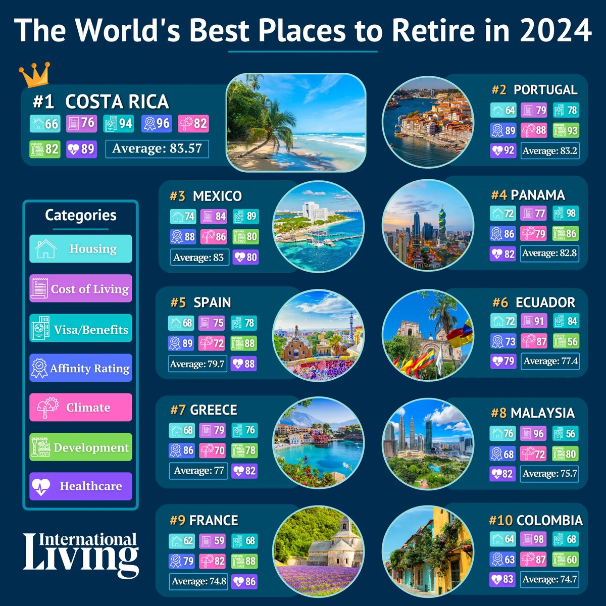 Опубликован свежий рейтинг The Annual Global Retirement Index, который сравнивает привлекательность разных стран для пенсионеров (правда, имеются в виду пенсионеры американские). Но ради любопытства мы решили показать вам, куда же советуют переезжать из США, чтобы хорошо, весело и дешево провести время на пенсии. Кстати, там даже появился такой лозунг «Сбежать из США», и есть компании, которые делают подбор таких мест и помогают релоцироваться. Итак, представляем рейтинг 2024 года.