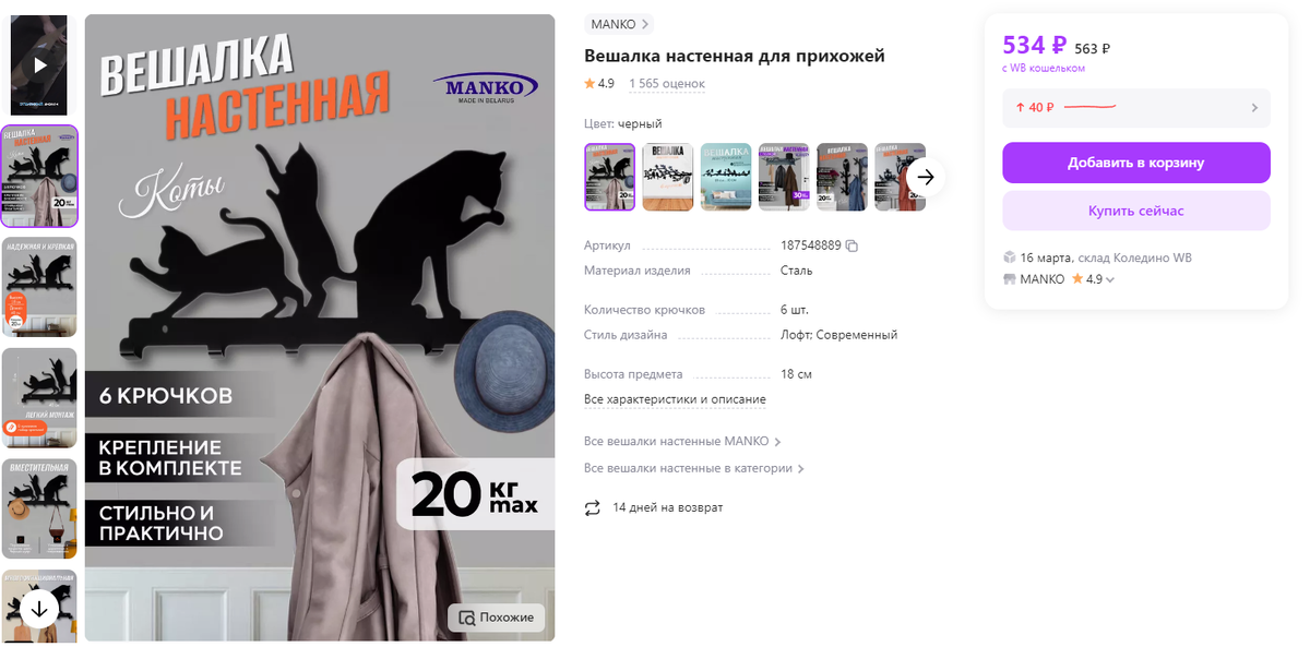 Приветствую, уважаемые читательницы! Сегодня предлагаю вам ознакомиться с уникальным выбором прекрасных товаров от Вайлдберриз по достпуной цене. 1. Вешалка настенная для прихожей Настенная вешалка Manko - идеальное решение для организации пространства в прихожей. Изготовлена из прочного металла, окрашена полимерной краской. Предоставляет удобное место хранения одежды, сумок и других предметов. Доступна в разных дизайнах и стилях, чтобы соответствовать интерьеру. Артикул: 187548889 2.Многоразовый липкий ролик для одежды Многоразовый ролик в форме шара - идеальное решение для легкой уборки и избавления от пыли, шерсти животных и других загрязнений на одежде, мебели и полу. Липкий слой эффективно собирает волосы, пух, ворсинки и крошки. Легко моется и многоразово используется. Компактный и стильный дизайн делает его удобным аксессуаром для повседневного использования. Артикул: 190011235 3.Чай подарочный листовой с фруктами Подарочный набор чая премиум класса - уникальное ассорти из лучши