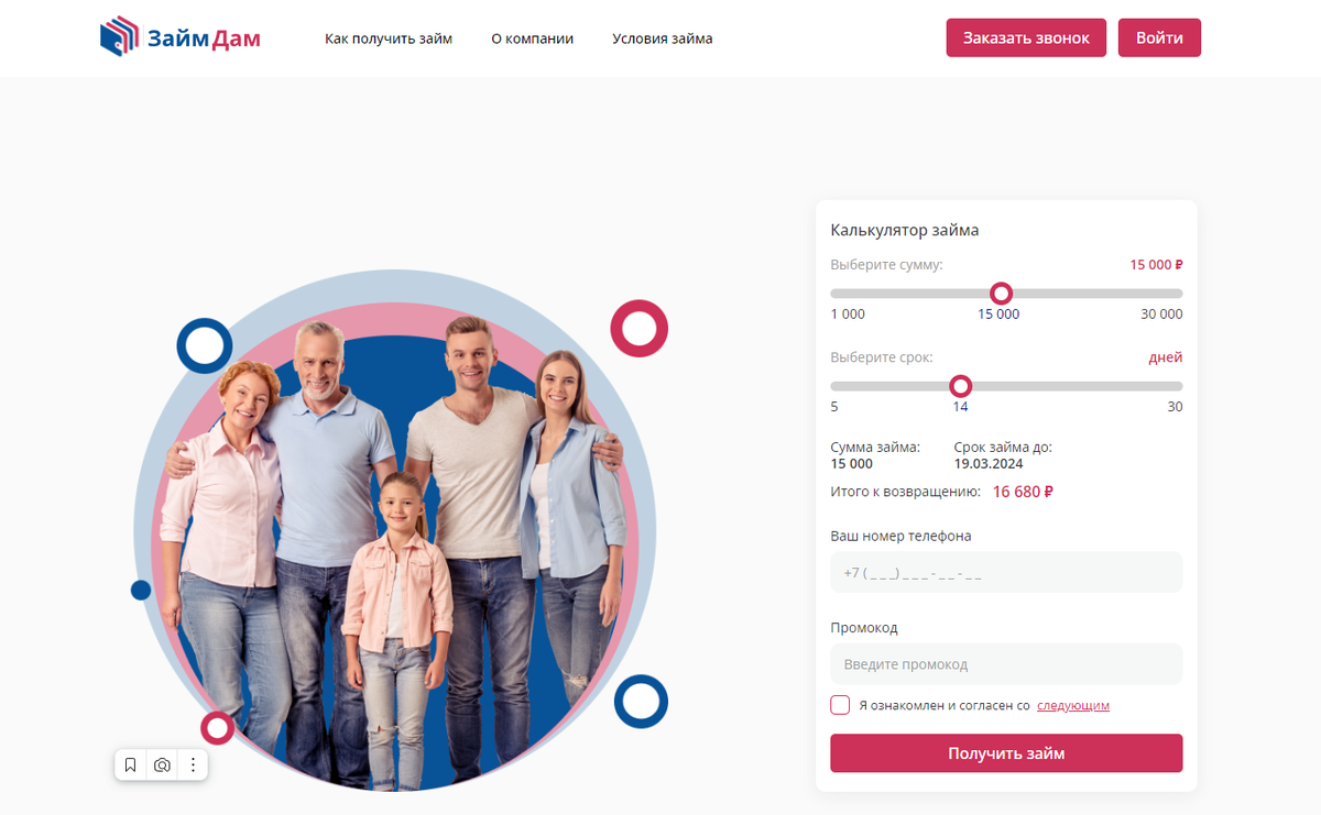 Как и все компании займ могут получить граждане РФ достигшие 18-летие.