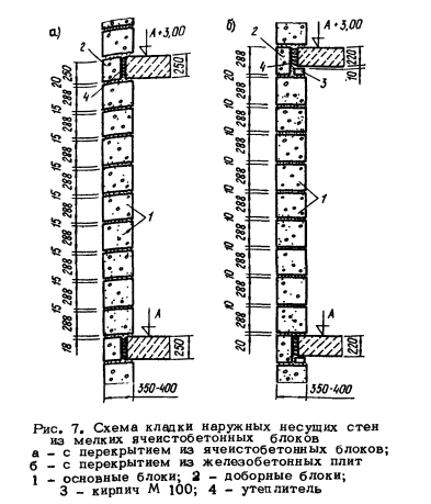 Да, вполне можно, раньше ни о каких промежуточных армопоясах и речи не шло: И вряд ли ложковый ряд кирпича, изображенный выше, можно назвать полноценной заменой железобетонному поясу - скорее, он здесь используется как доборный элемент. Тем более, что, например, сплошная ячеистобетонная плита всего-то на 20% легче аналогичной железобетонной пустотной, и по итогу не сильно отличается от нее по суммарной нагрузке, поскольку все прочие нагрузки (стяжка, перегородки, люди, мебель и пр.) остаются точно такими же. Но при этом, допустимость укладки ячеистобетонных плит без ж.б. армопоясов сомнений особых не вызывает. Ну и в тех же "рекомендациях", откуда я взял картинку выше, можно найти узлы опирания железобетонных плит непосредственно на ячеистобетонные блоки: Но слепо доверять картинкам даже из самых умных книг мы не будем поэтому попробуем проверить по СНиП узел опирания плиты сразу на ячеистобетонную кладку на участке стены в 1 метр причем даже с самыми невыгодными допущениями: Как ви