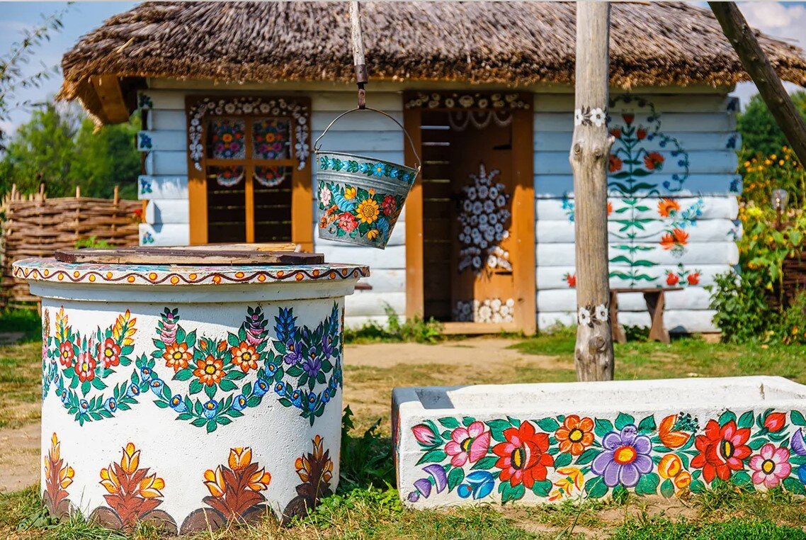 К концу лета весь дом бабули был разрисован цветочным орнаментом: и потолок, и печь, и стены. А ещё через год Аська раскрасила фасад дома бабули снаружи, а к нему заодно и колодец с забором. И такая красота получилась, что не передать словами. И стали жители деревни, один за другим, просить Аську их постройки разукрасить: кому сарай, кому хлев, кому беседку. И пока Аська в школе училась, да на летние каникулы в Могильцы приезжала, раскрасила она больше двадцати построек. Не одна, конечно, вся деревня ей помогать стала, под её чутким руководством творчество её перенимать.