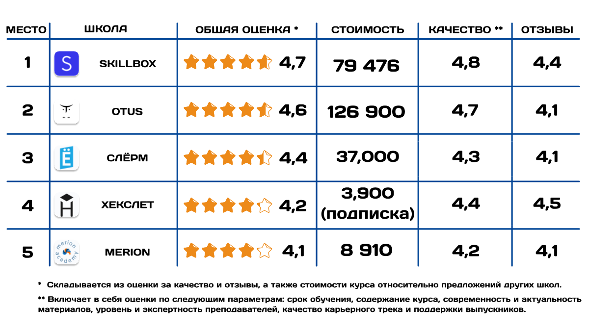 Мы постоянно работаем над улучшением наших обзоров и рейтингов курсов, чтобы они делали процесс выбора простым и понятным. Если вам не хватило какой-то информации, или у вас есть пожелания, как улучшить наши статьи, просим вас написать в комментариях что именно нам стоит изменить или дополнить. Мы чутко реагируем на обратную связь и обязательно добавим недостающую информацию!