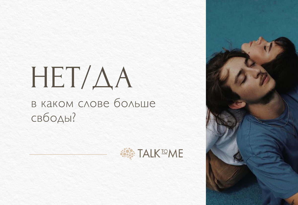 Кажется, говорить «да» — это быть открытым: возможностям, контактам, опыту, приключениям. Уходить от рутины. А «нет», как будто ограничивает. Ограничивает, но вместе с тем защищает. Бывает ли у вас, что вы часто говорите «да», а потом сожалеете, что согласились на эмоциях, переоценили свои силы, не рассчитали время, не расставили приоритеты? Слишком быстрое «да» не позволяет взять паузу, прислушаться к себе, примериться, действительно ли мне это подходит. Для свободы делать то, что подходит, нужно «нет». «Нет» позволяет обозначить свою границу, поставить рамку: разговору, предложениям, контактам, просьбам. «Нет» — это слово заботы о своем времени, своих приоритетах и интересах и силах. Это свобода жить свою жизнь, как тебе хочется. Искусство жить как всегда в балансе. Слишком много «нет» ограничивает новые впечатления и возможности. Слишком много «да» — риск стать обслуживающим чужие потребности. Хотите лучше узнать себя? Психологи нашего центра Talk to me будут рады помочь вам и подд