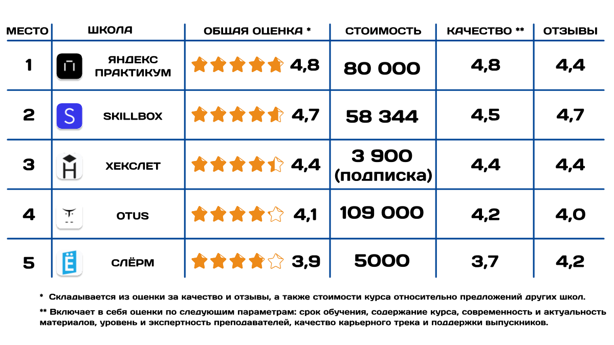Мы постоянно работаем над улучшением наших обзоров и рейтингов курсов, чтобы они делали процесс выбора простым и понятным. Если вам не хватило какой-то информации, или у вас есть пожелания, как улучшить наши статьи, просим вас написать в комментариях что именно нам стоит изменить или дополнить. Мы чутко реагируем на обратную связь и обязательно добавим недостающую информацию!