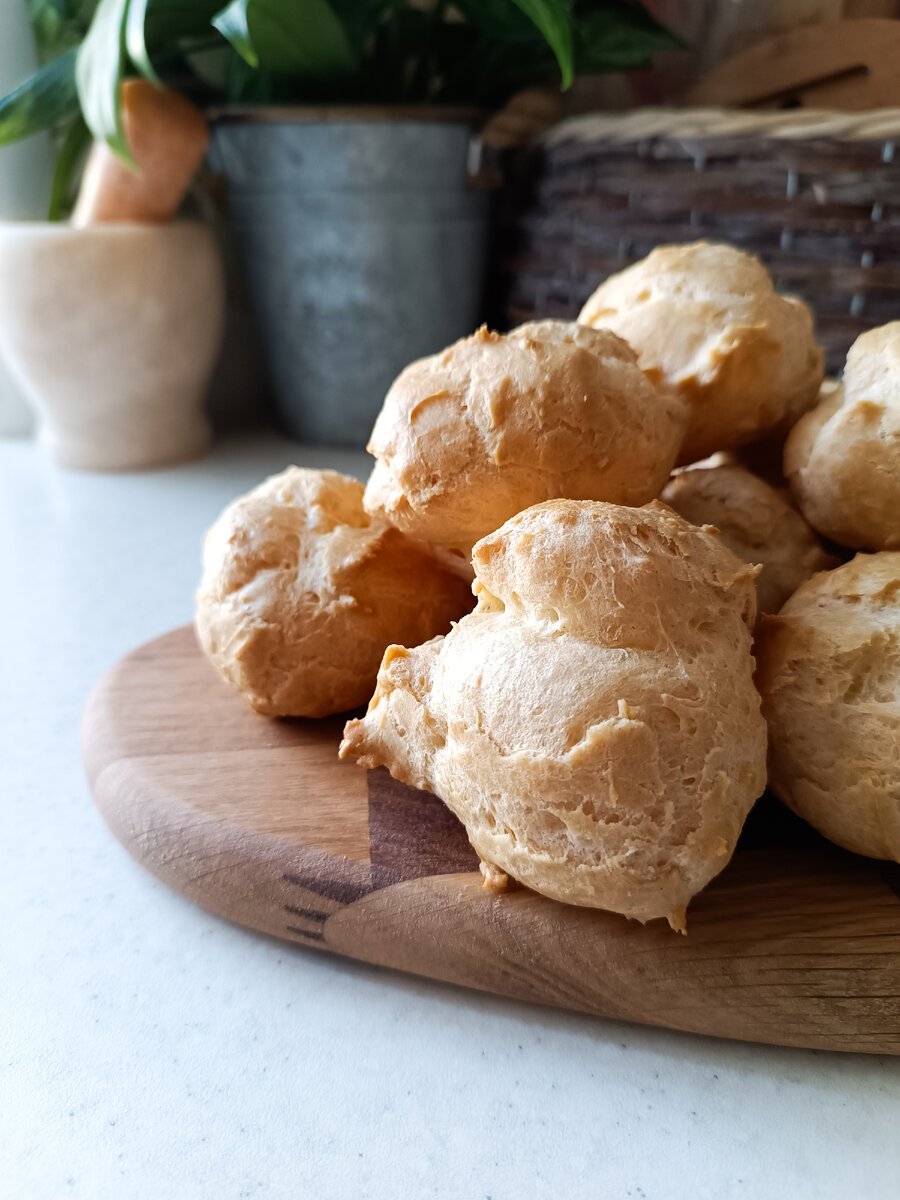 Методом проб и ошибок, долгих поисков и экспериментов я пришла к лучшему для себя рецепту заварного теста. Главный плюс - вам понадобится яиц меньше чем по ГОСТу, а часть сливочного масла можно будет заменить более дешёвым маргарином. 1. В кастрюле соединяем воду, соль, сливочное масло и маргарин. 2. Смесь доводим до кипения и всыпаем муку, тщательно перемешиваем, после чего сразу снимаем с огня. 3. В остывшую массу поочередно взбиваем яйца. 4. Продолжаем взбивать до густой кремообразной консистенции. 5. Ложкой выкладываем тесто на противень на некотором отдалении друг от друга, так как во время выпечки профитроли увеличиваются в размерах. 6. Выпекаем в разогретой до 190°С духовке 30 минут, затем убавляем до 160°С и держим ещё минут 10. Если комочки теста меньше, чем на фото (например, вы выкладывали не столовой ложкой, а чайной), то возможно они будут полностью готовы через полчаса. С помощью базового рецепта профитролей вы получите полые булочки из заварного теста, которые затем можн