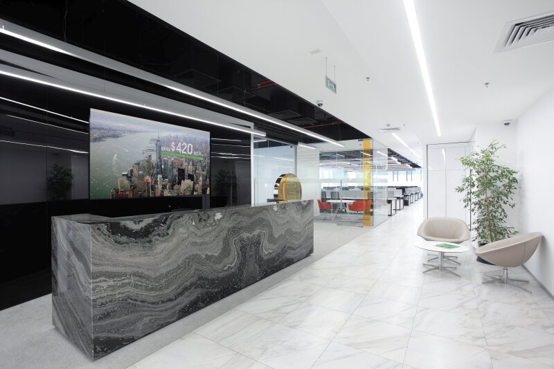 О проекте Заказчик: JSC Freedom Finance Адрес: Казахстан, г. Алматы, пр-т Аль-Фараби, д. 77/7 этаж 3,7 Проектирование: 1 мес Реализация: 6 мес Проектирование и строительство Архитектурное бюро: Adetail (ГАП Дыханова А.) Строительная компания: КазПерСтрой Инвестиционная компания «Фридом Финанс» – это команда специалистов с десятилетним опытом работы в сфере американского и российского фондовых рынков. Филиалы компании расположены в 30 крупных городах России и Казахстана. Также в холдинг входит и российский банк, специализирующийся на физических и юридических лицах. Бизнес-задача Офис компании размещается в бизнес-центре класса А и должен подчеркивать направление деятельности и статусность компании. Пространство офиса должно отвечать стандартам международной компании и сохранять логику коммуникации между отделами, а также быть комфортным для сотрудников и клиентов. Организация пространства На одном из этажей двухэтажного офиса размещаются брокерский зал и обширная клиентская зона, а такж