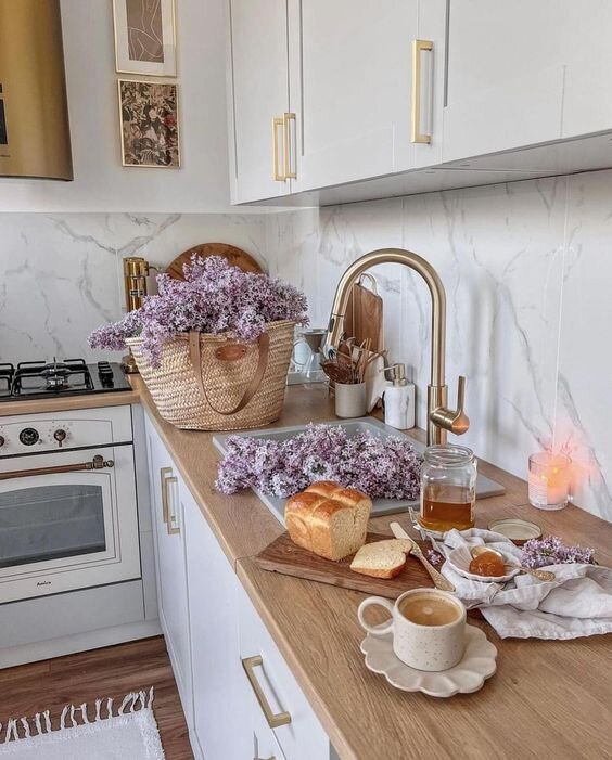 Рассказываем, как создать красивое и функциональное пространство стиля и уюта даже на самой маленькой кухне... Белая классика Миниатюрная белая кухня — одно из базовых и универсальных решений. Однако получится ли она уютной и стильной или безликой, зависит от самых разных нюансов. А вот несколько сочетаний, которые точно сумеют создать уют и красоту даже в ограниченном пространстве. Дерево, мрамор и контрастные детали Разбавить лаконичную белую кухню деревом или мрамором — популярный дизайн-прием. При чем его можно использовать как совместно, так и по-одному. Получится эффектно и визуально дорого. Кроме того, белый цвет или молочные тона можно органично сочетать с другими оттенками, которые сделают кухню более акцентной и элегантной. При чем не только с такими же нейтральными, но и с пастельными или темными. Но они обязательно должны гармонировать между собой: Стоит также обратить внимание на использование оригинального фартука. с помощью которого создается уют и привносится неповтори